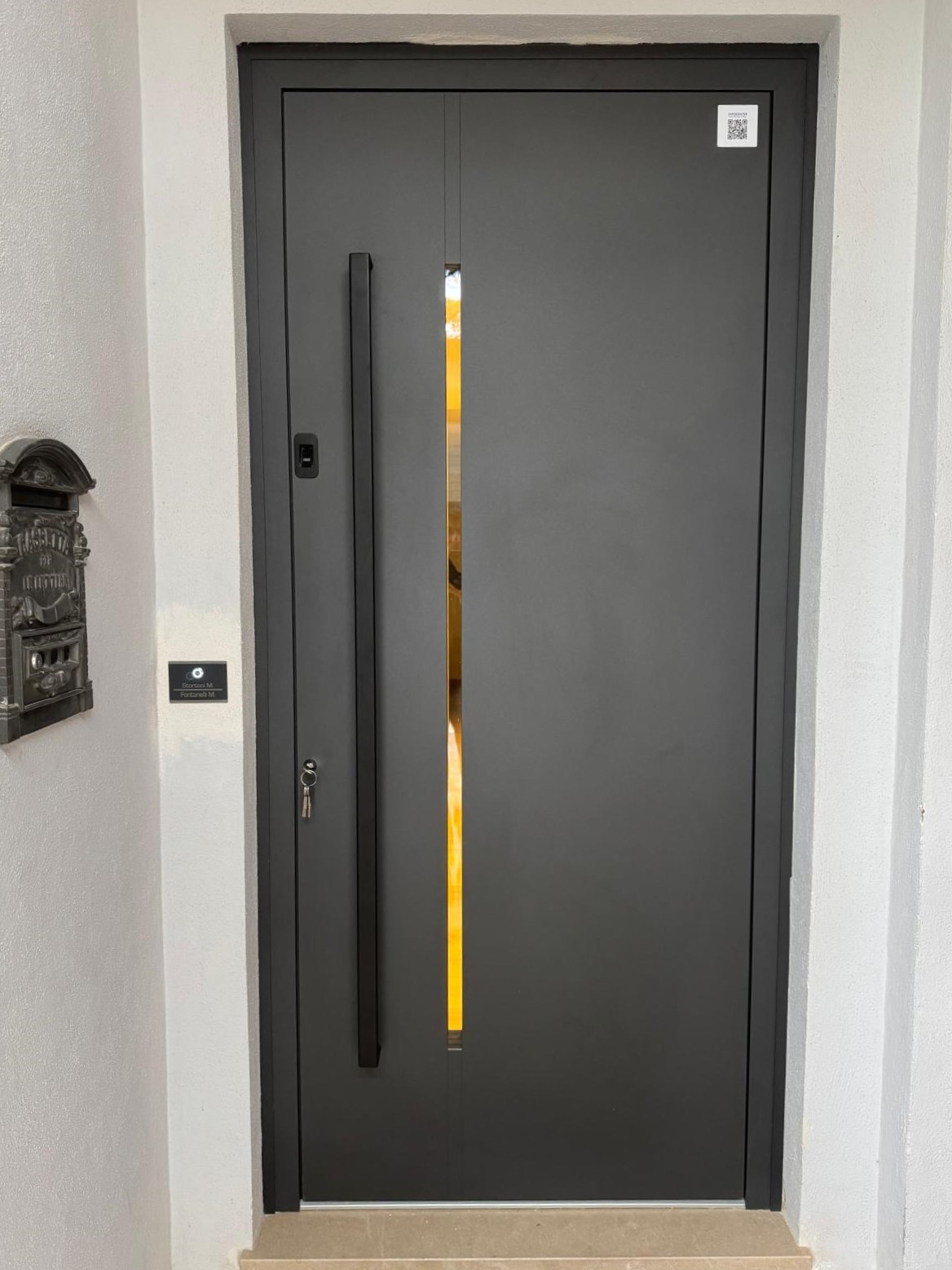 Abbiamo seguito la nostra cliente nella ristrutturazione della sua casa, a partire dal portone d’ingresso. La linea Gro Design Groke si contraddistingue per il mix di estetica e funzionalità: anta complanare con rivestimento in finitura ferro micaceo all’esterno e bianco ruvido all’interno; inserimento di triplo vetro satinato sull’anta; maniglione a barra semirotonda RAL 9005; serratura motorizzata automatica con scanner biometrico.