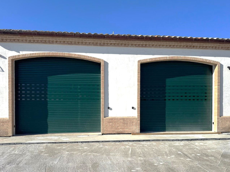 La configurazione scelta dal cliente prevede motorizzazione, profili vetrati e verniciatura colore verde RAL 6005, per integrarsi perfettamente con l’ambiente.